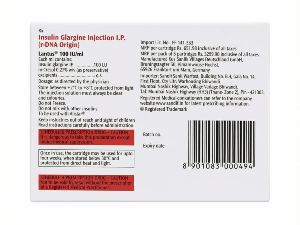 Lantus 100IU/ml Insulin Glargine Injection (DNA Origin) 5*3 ml